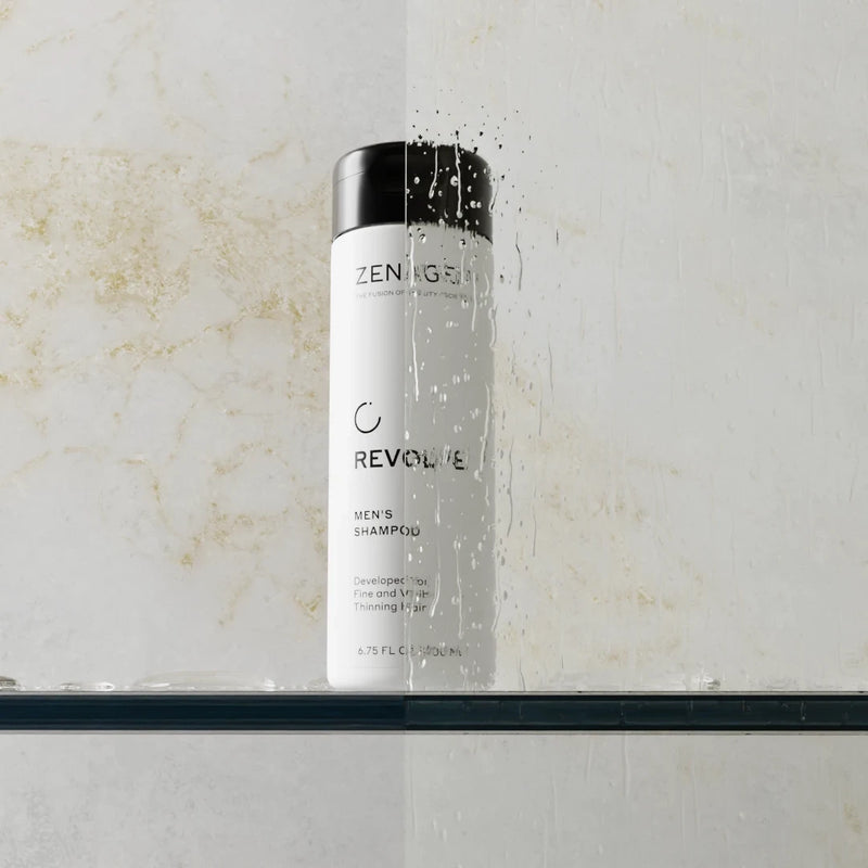 The Zenagen Revolve Men’s Densifying Kit is a 30-day kit that combines three powerfully simple steps to transform your daily routine: cleanse, condition, and densify. This plant-powered trio helps support a balanced scalp, visibly thicker hair, and lasting confidence — all in an effortless, salon-tested system designed specifically for men.